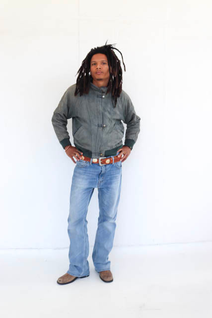 Grey Leather Bomber Jacket
